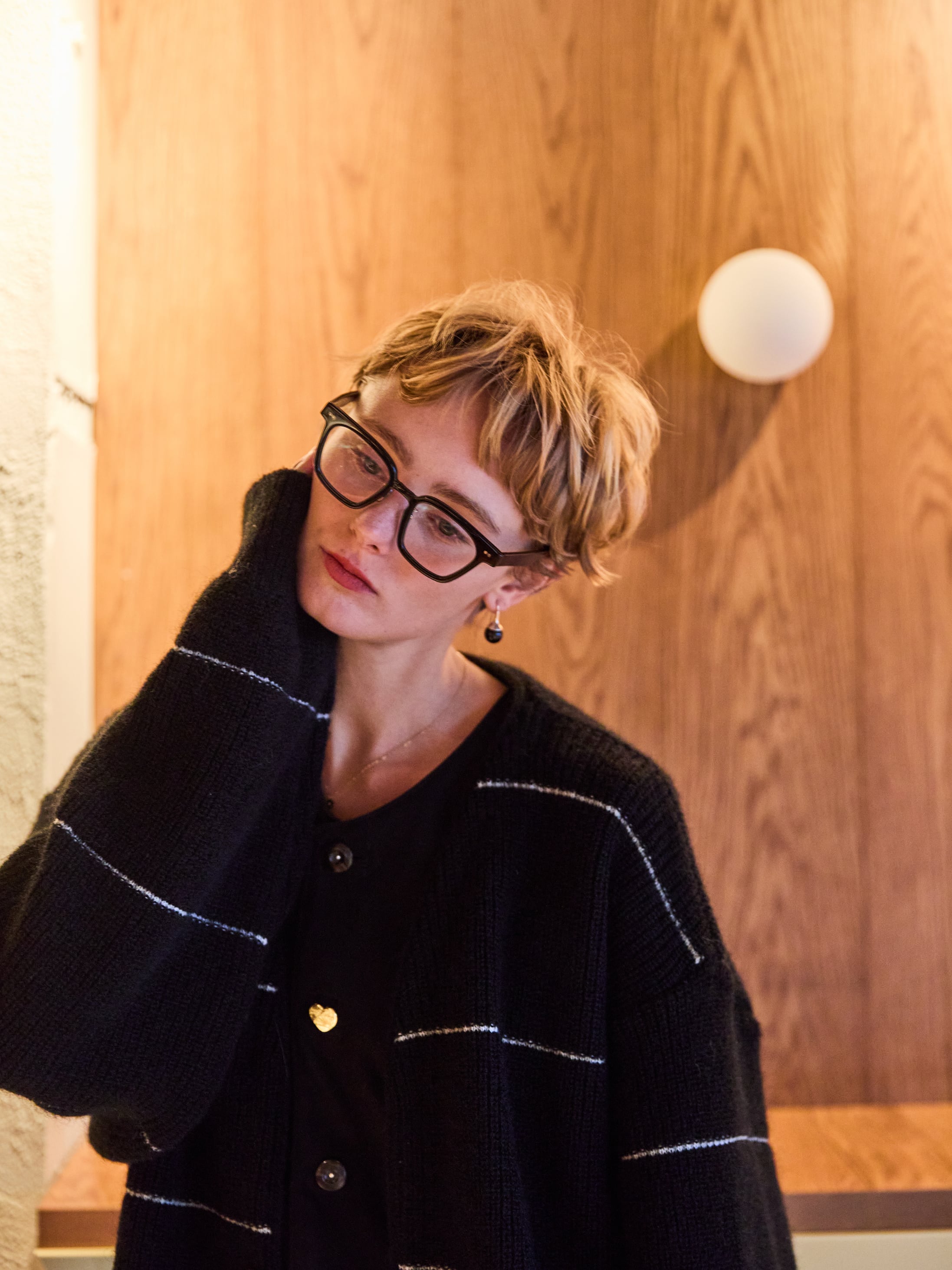 MOHAIR BORDER CARDIGAN (BLACK) - THE SUNNY