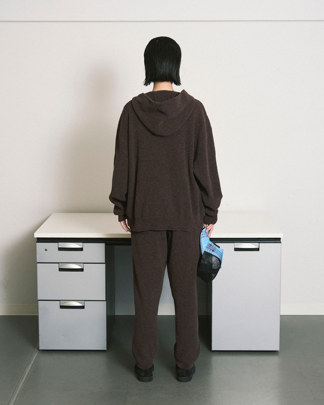 CORDY KNIT ZIP HOODIE (BROWN) - PHINGERIN