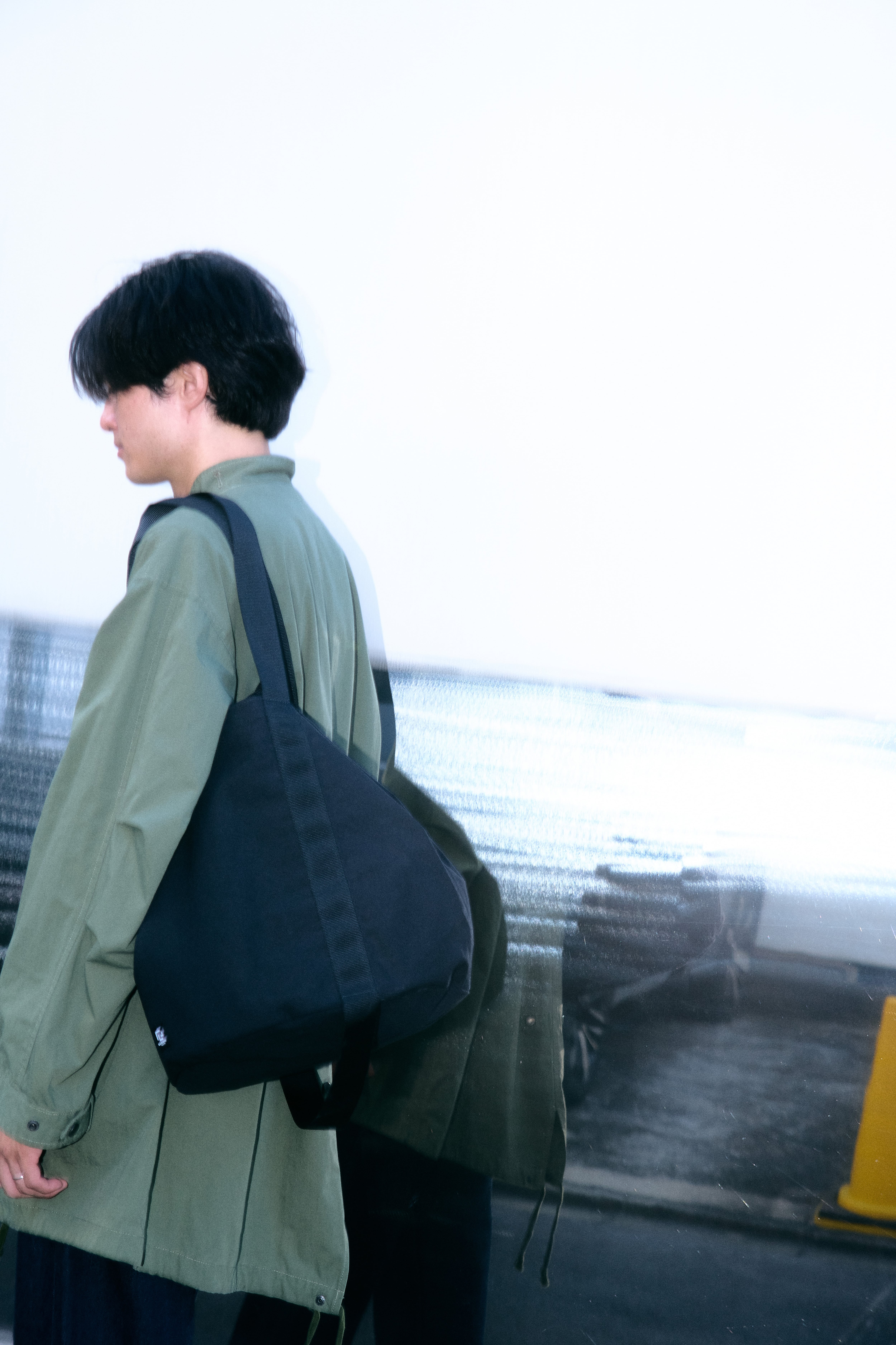 マチハギ(底)が丸く、天口の両脇にあるテープを付け合わせることで巾着バックのようなシルエットに変わります。