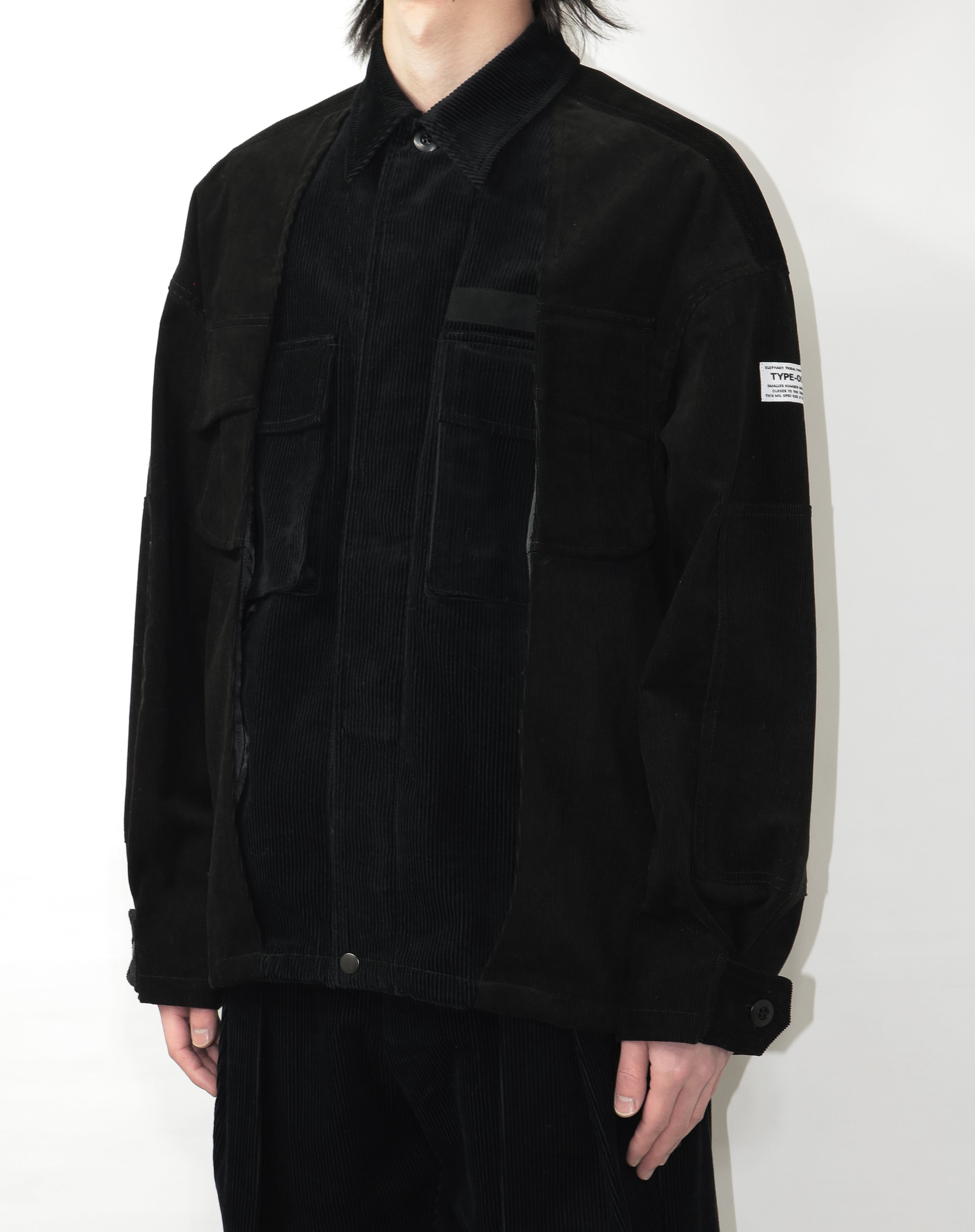 内側のBDUシャツ部分は8Wの太畝コーデュロイを使用し、外側のファティーグシャツ部分は14Wの細畝コーデュロイを使用。