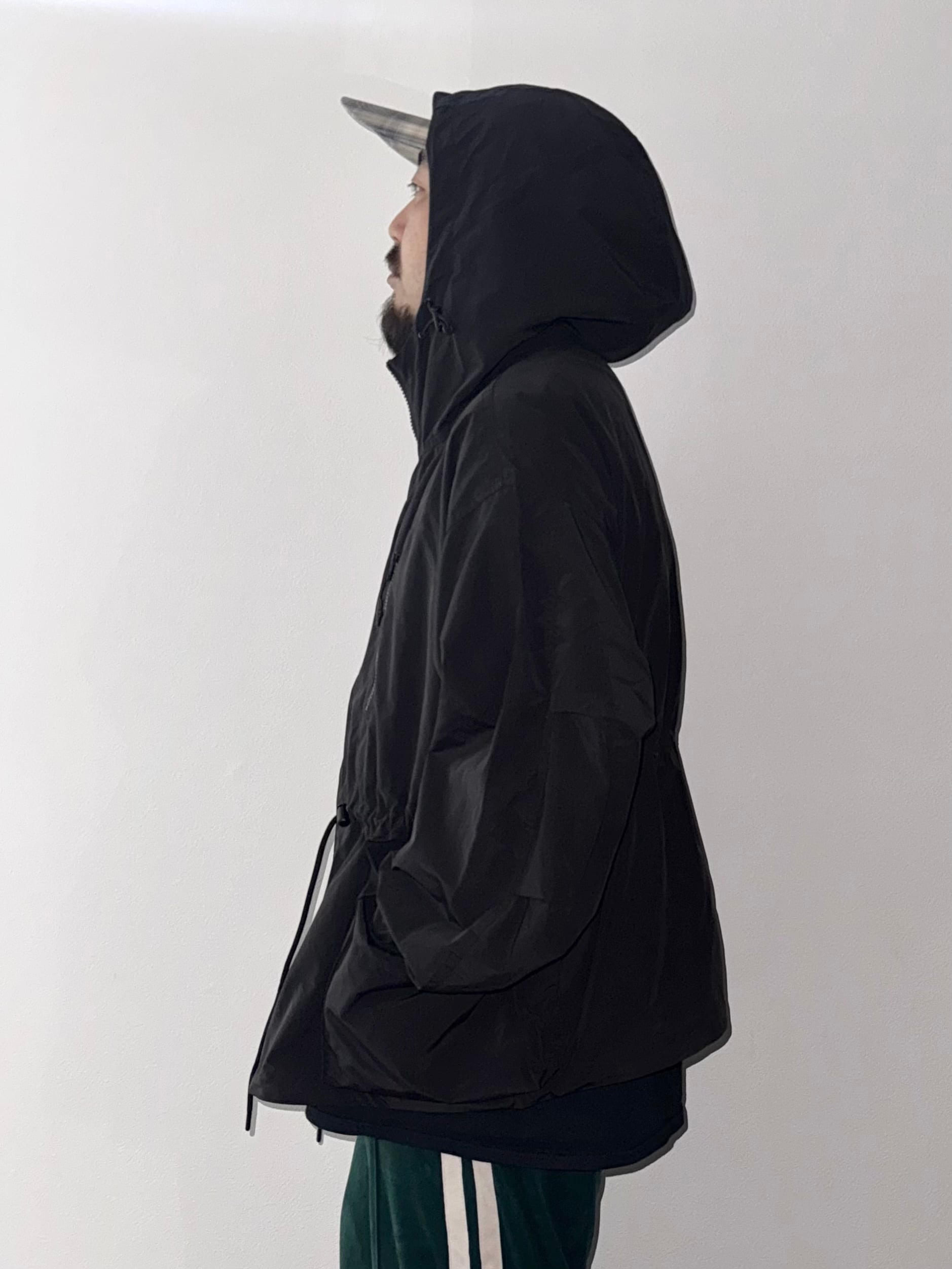大きめのサイドポケットやウエストコードでシルエットを変更できたりと、着回しの幅が広い1着◎