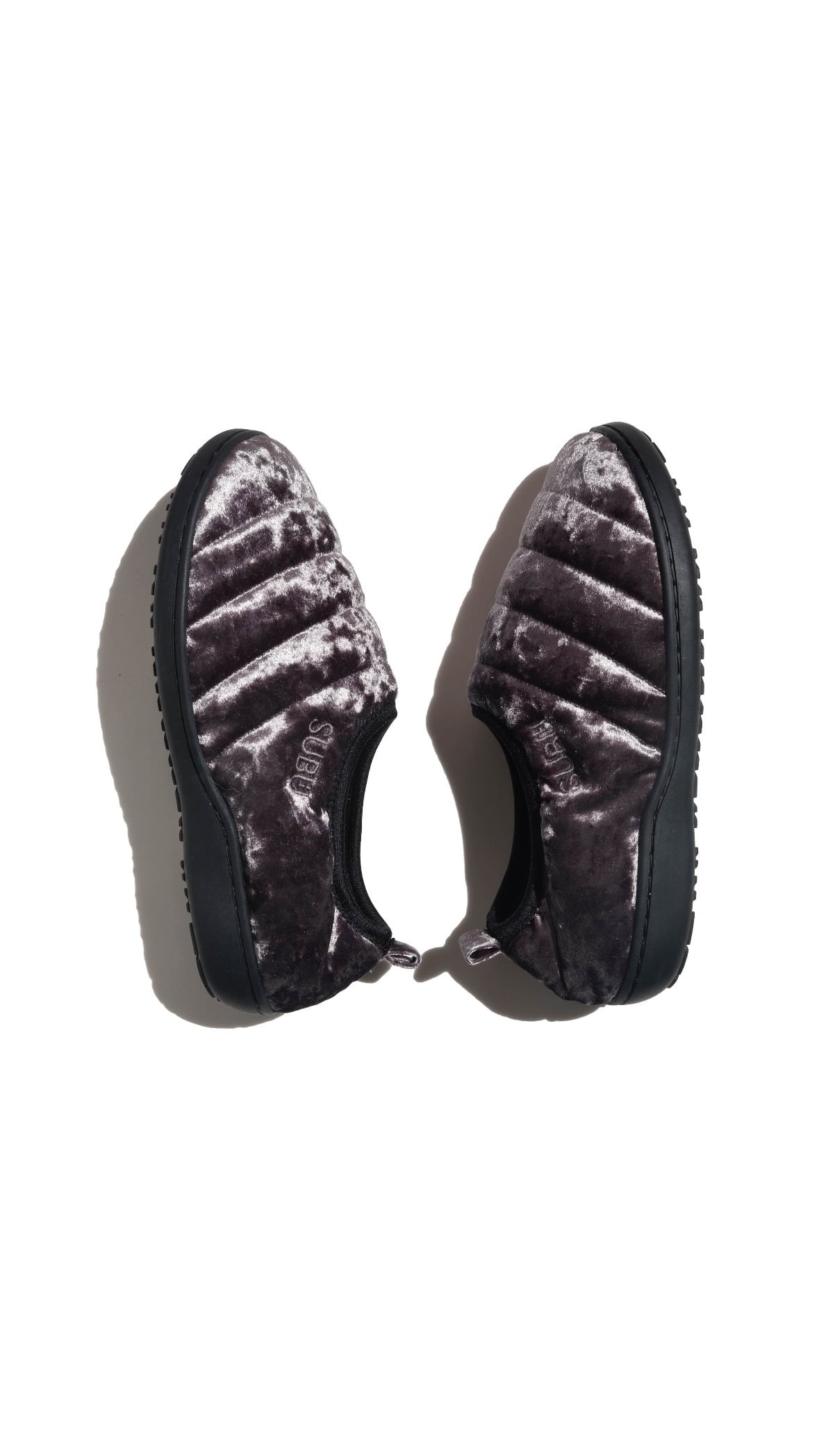 ベルベット素材の柔らかな光沢と落ち着いた色合いが、冬の足元にドレッシーな存在感を与えます。