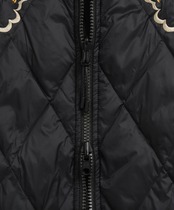 表側は、毛羽のあるベロア素材にスカジャン刺繍を、裏側は、ダイヤキルトダウンジャケットで、気分やコーデに合わせて楽しめるリバーシブル仕様に仕上げました。
