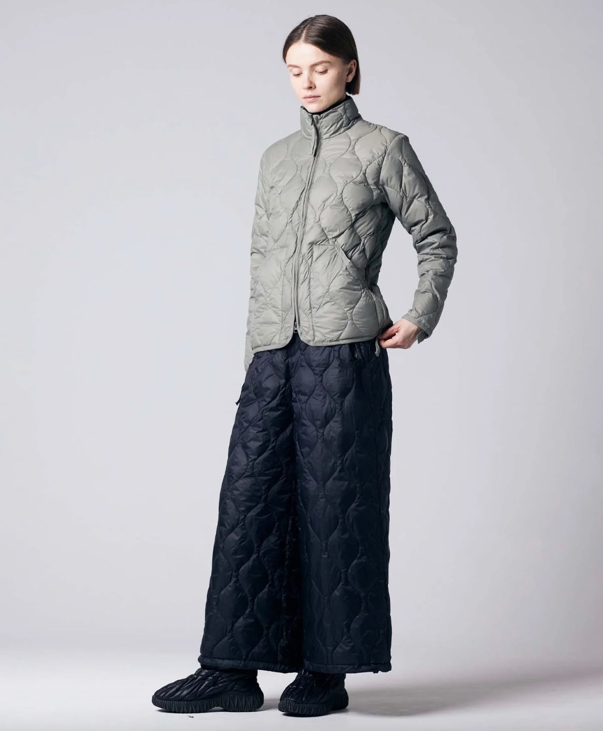 柔らかく気心地を重視した、ゆったりしたシルエットのミリタリーダウン。(キュロットスカートタイプでパンツの様な仕様)