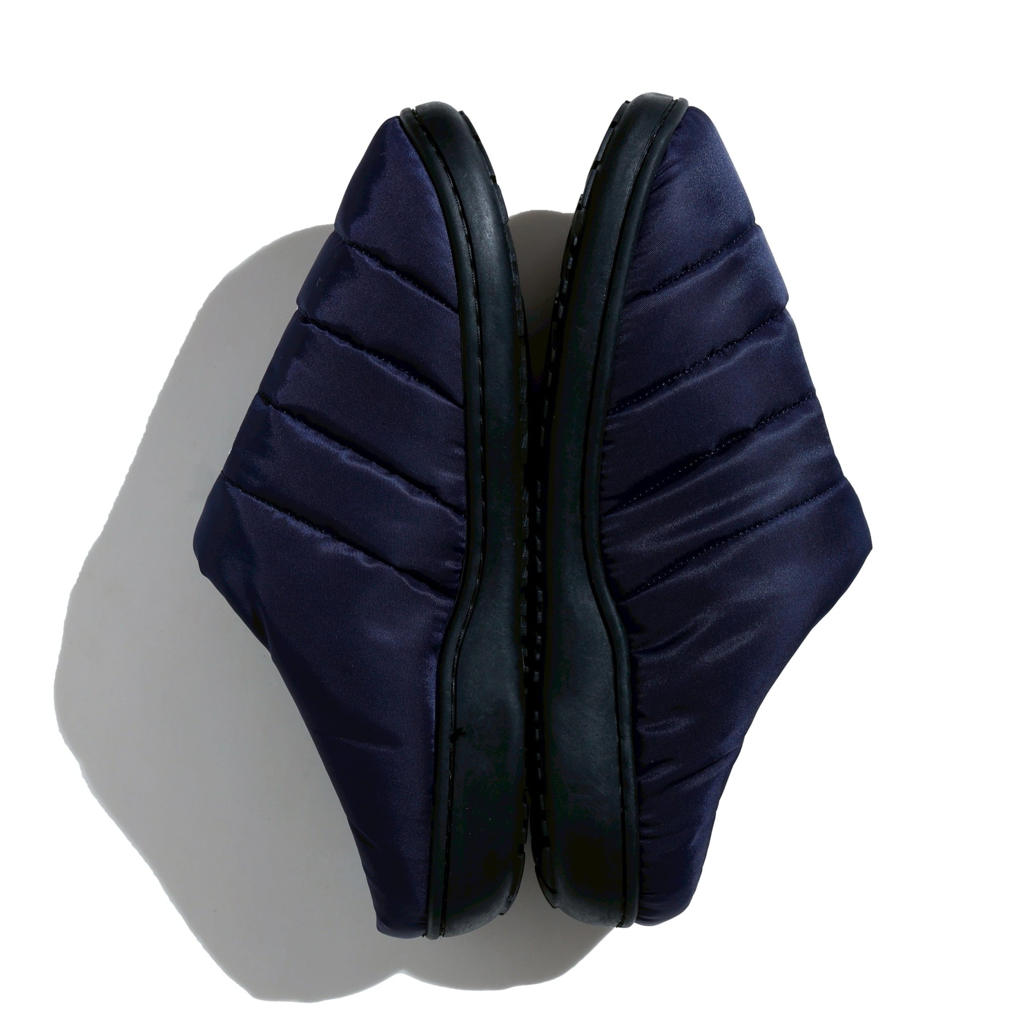 ダウンのような暖かさで素足をつつみ込み、起毛加工の内側の生地と4層構造のインソールが、足全体に抜群のフィット感を生み出し、優しい履き心地をつくりだします。