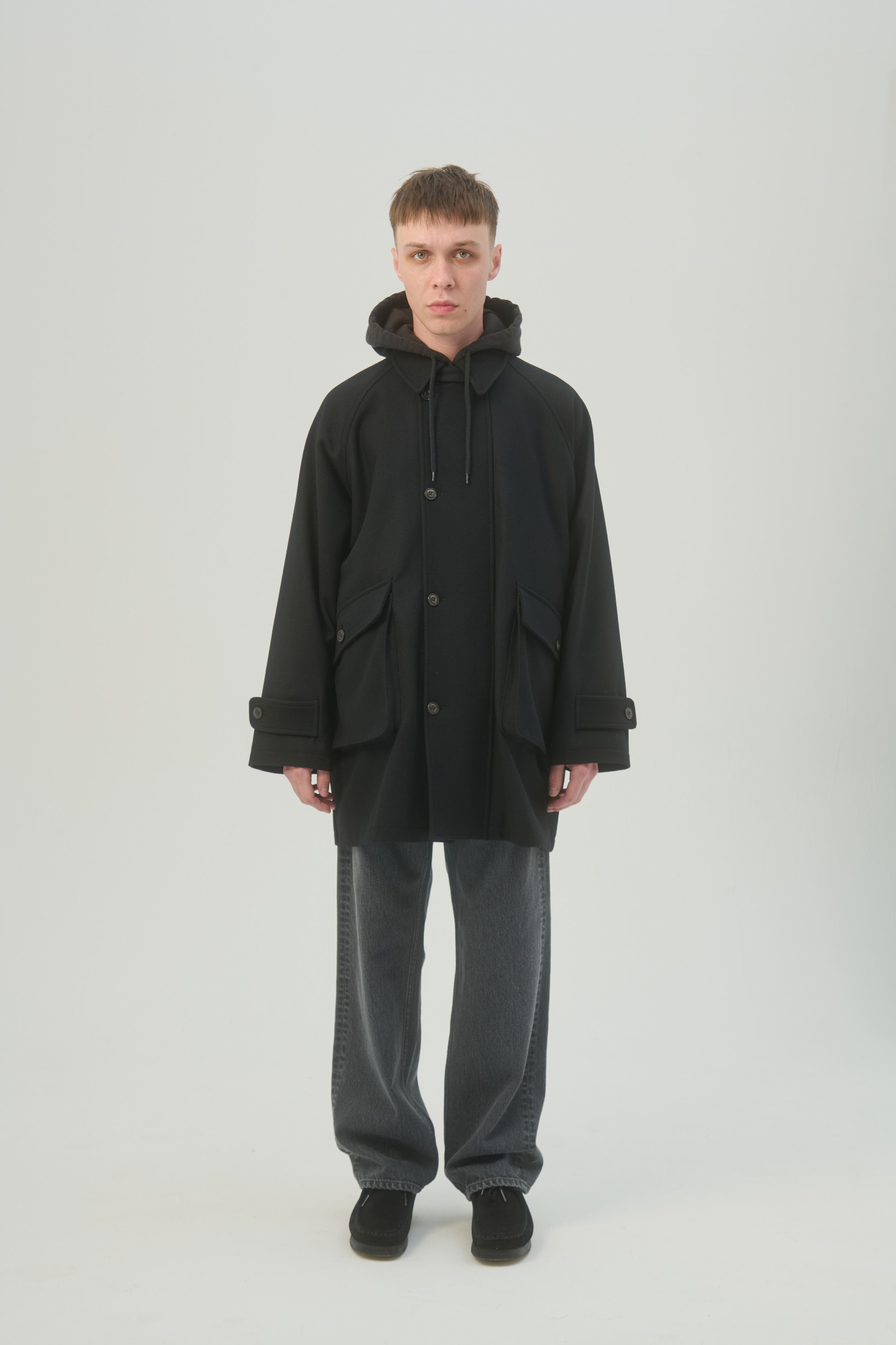 上質なラムウールを使用したメルトンのミドル丈オーバーコート