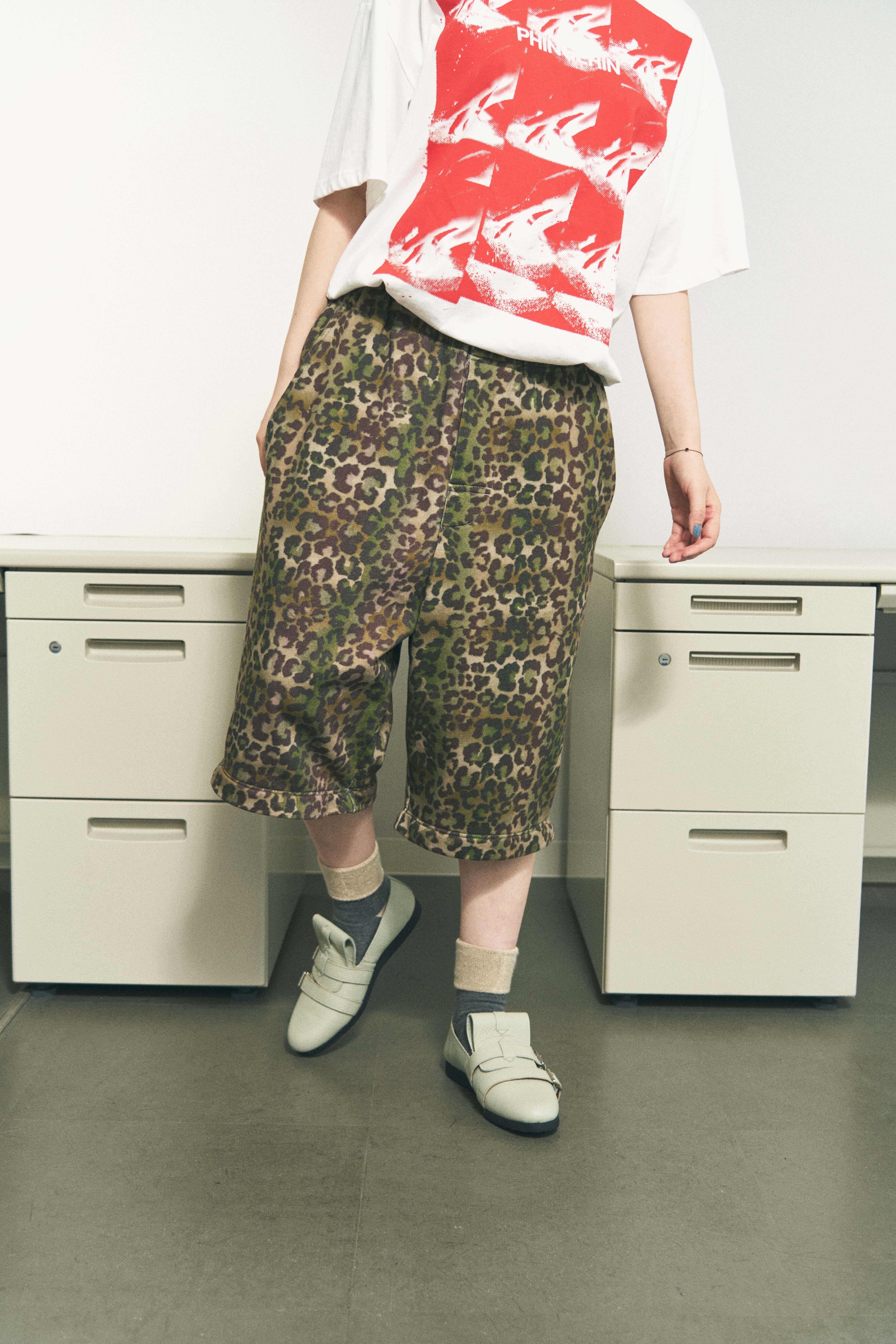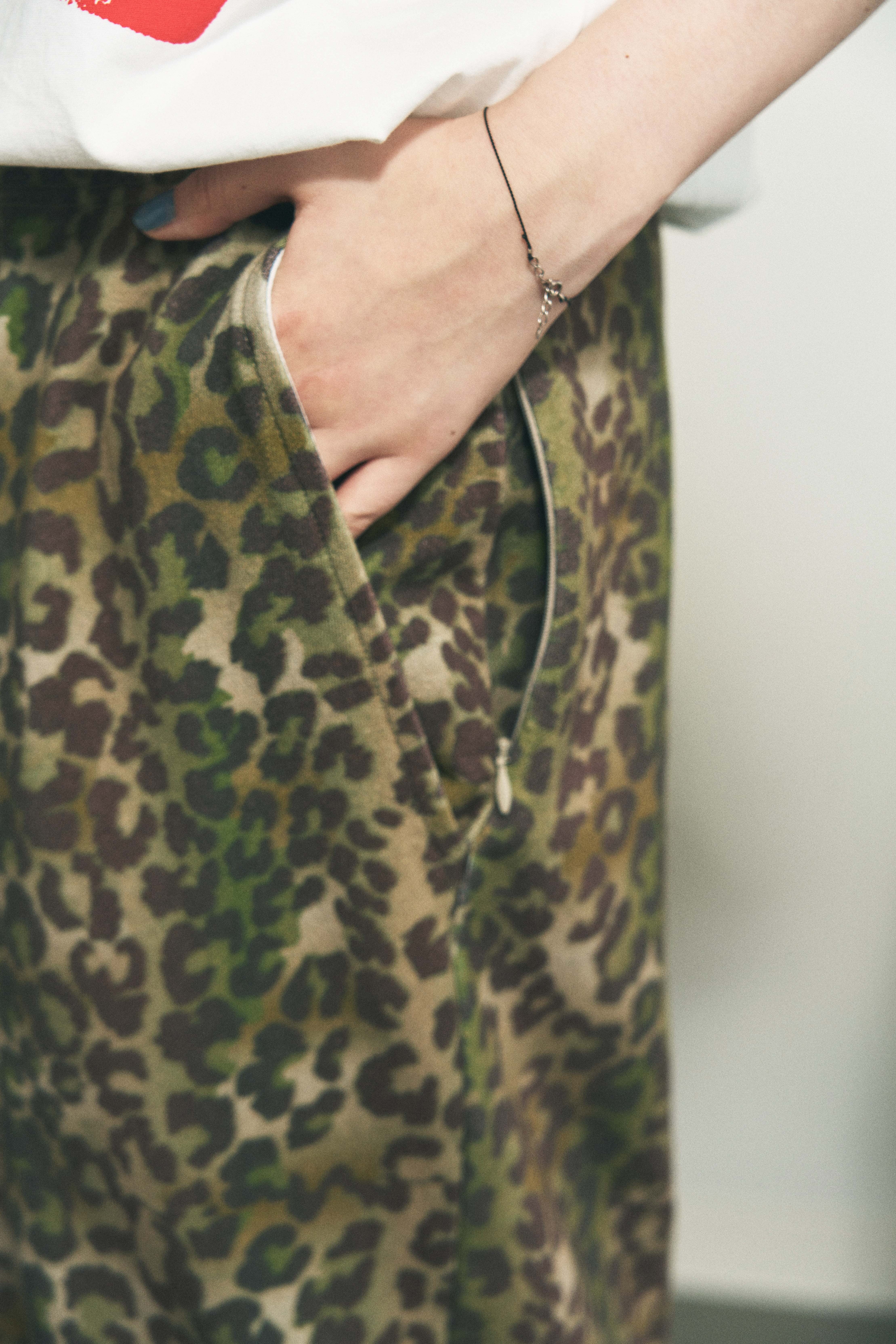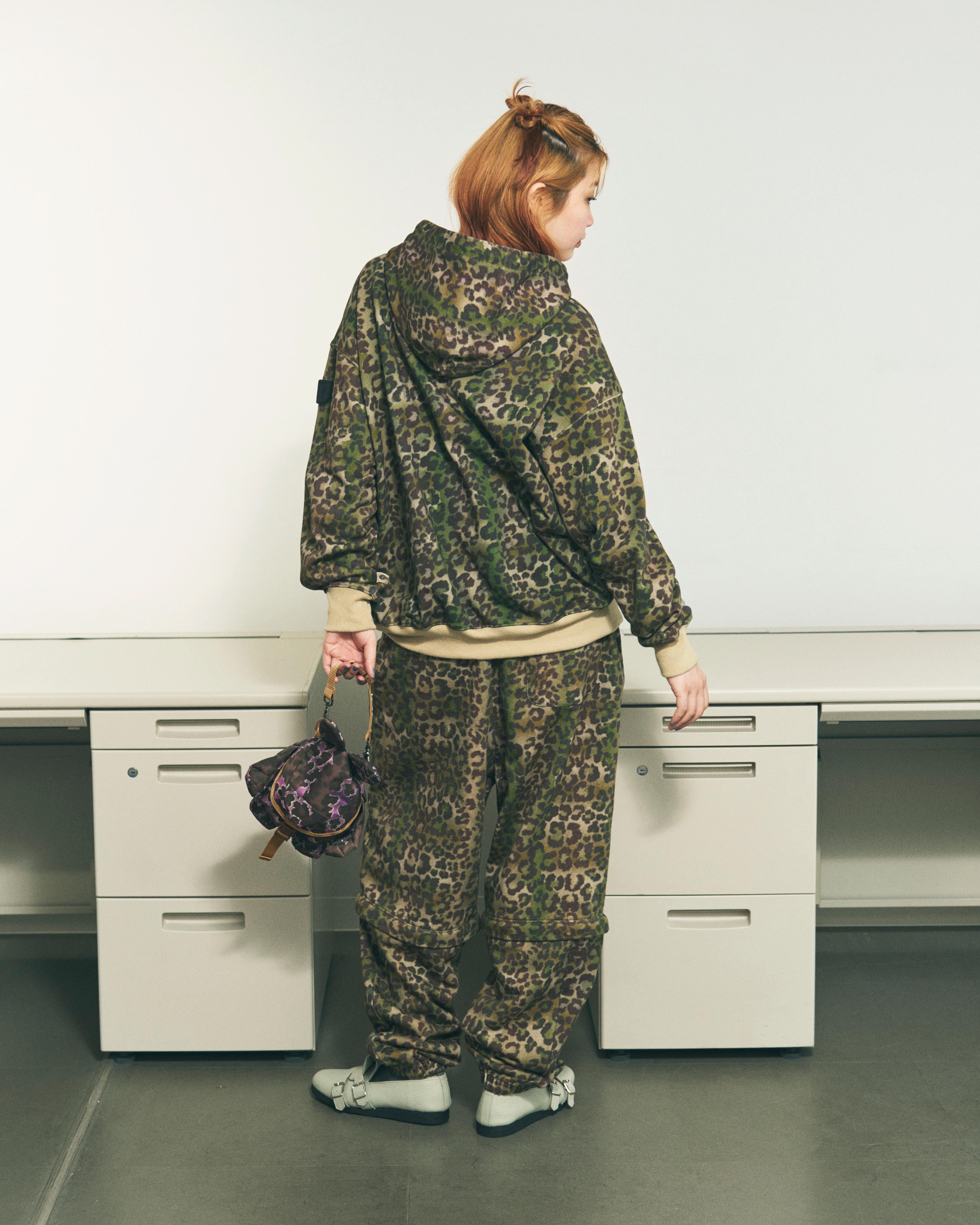 アーミー調のカラーテーマと錯覚のようなグラデーションが新しい、オリジナルレオパード柄を使用したスウェットパンツ