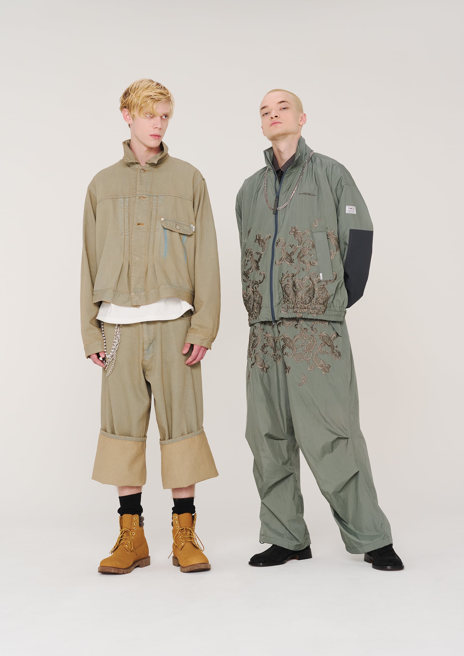 ミリタリー要素を軸に 色、素材、サイジングなどで変化を持たせ、やわらかさのある服。