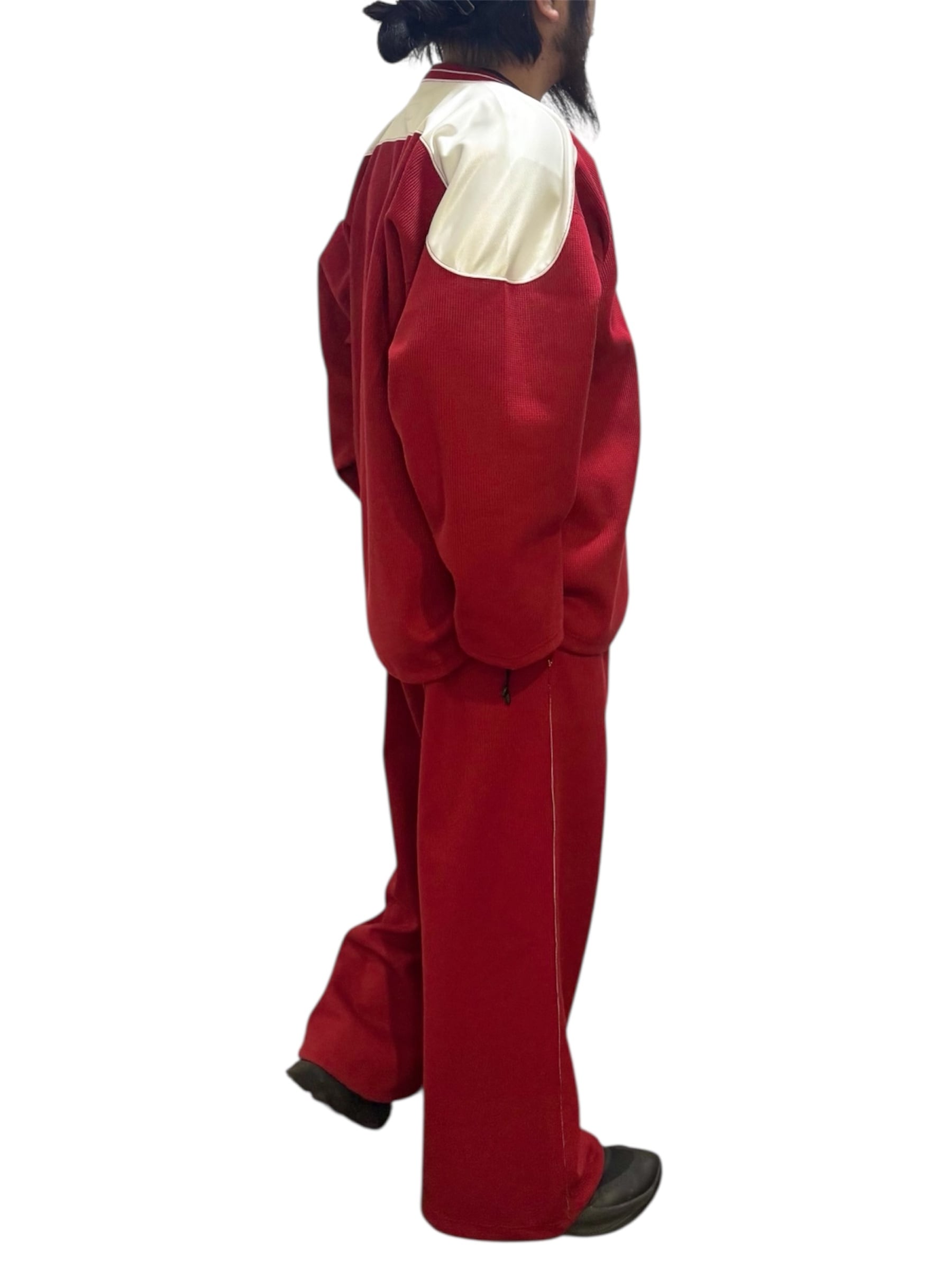 素材にはミリタリーのインナーウェアに見られるサーマル生地を表地に、