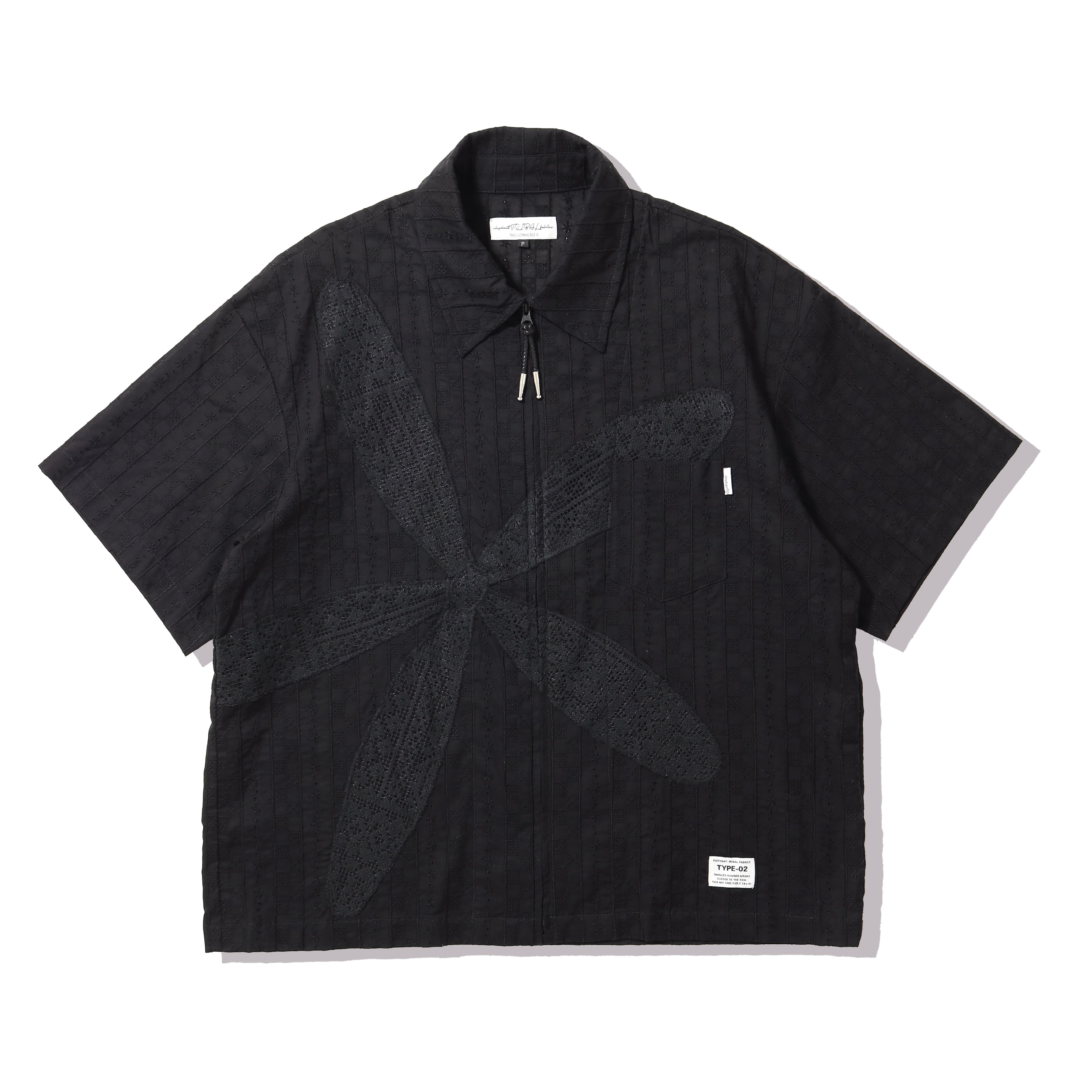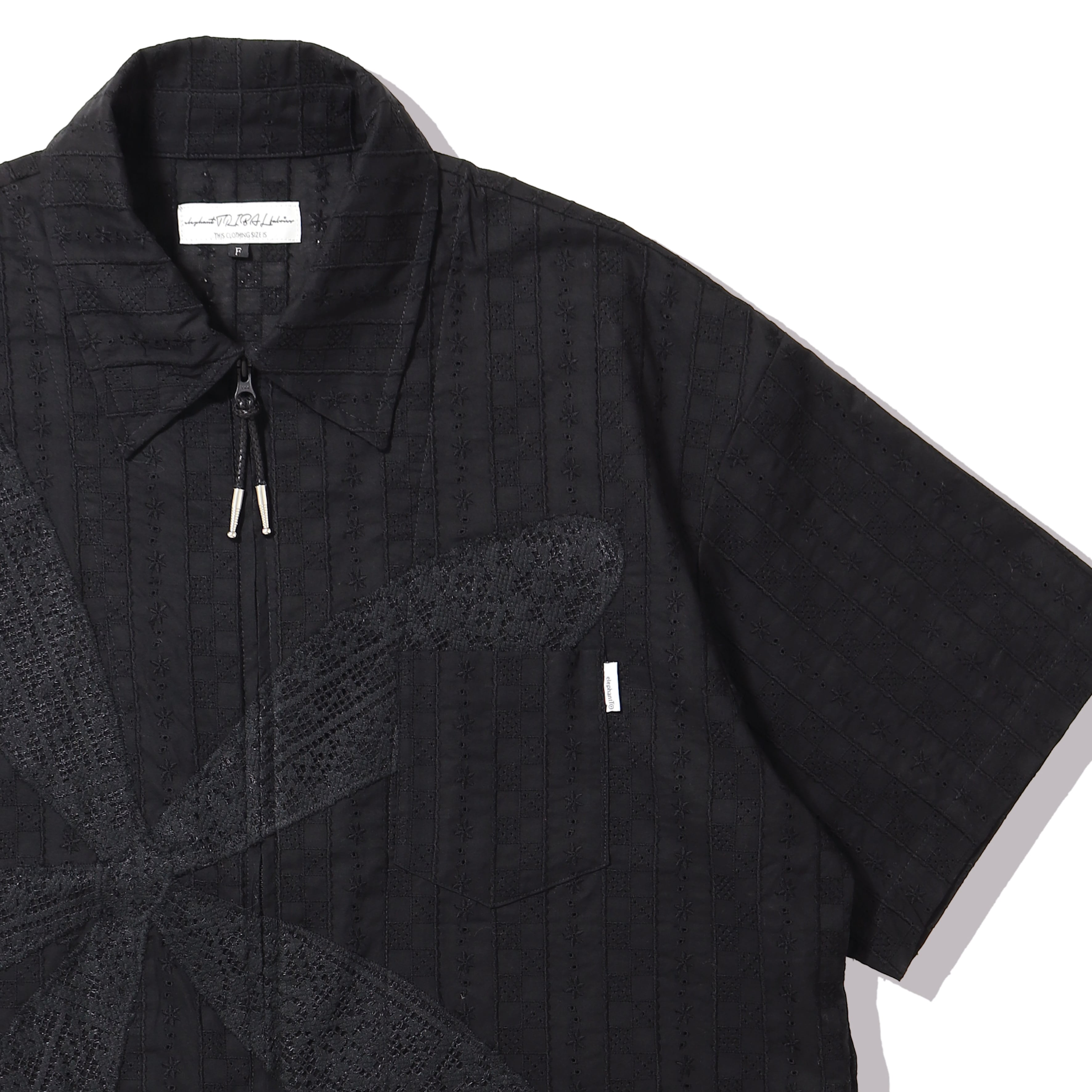 odd FLOWER ZIP SHIRT (BLACK) - elephant TRIBAL fabrics