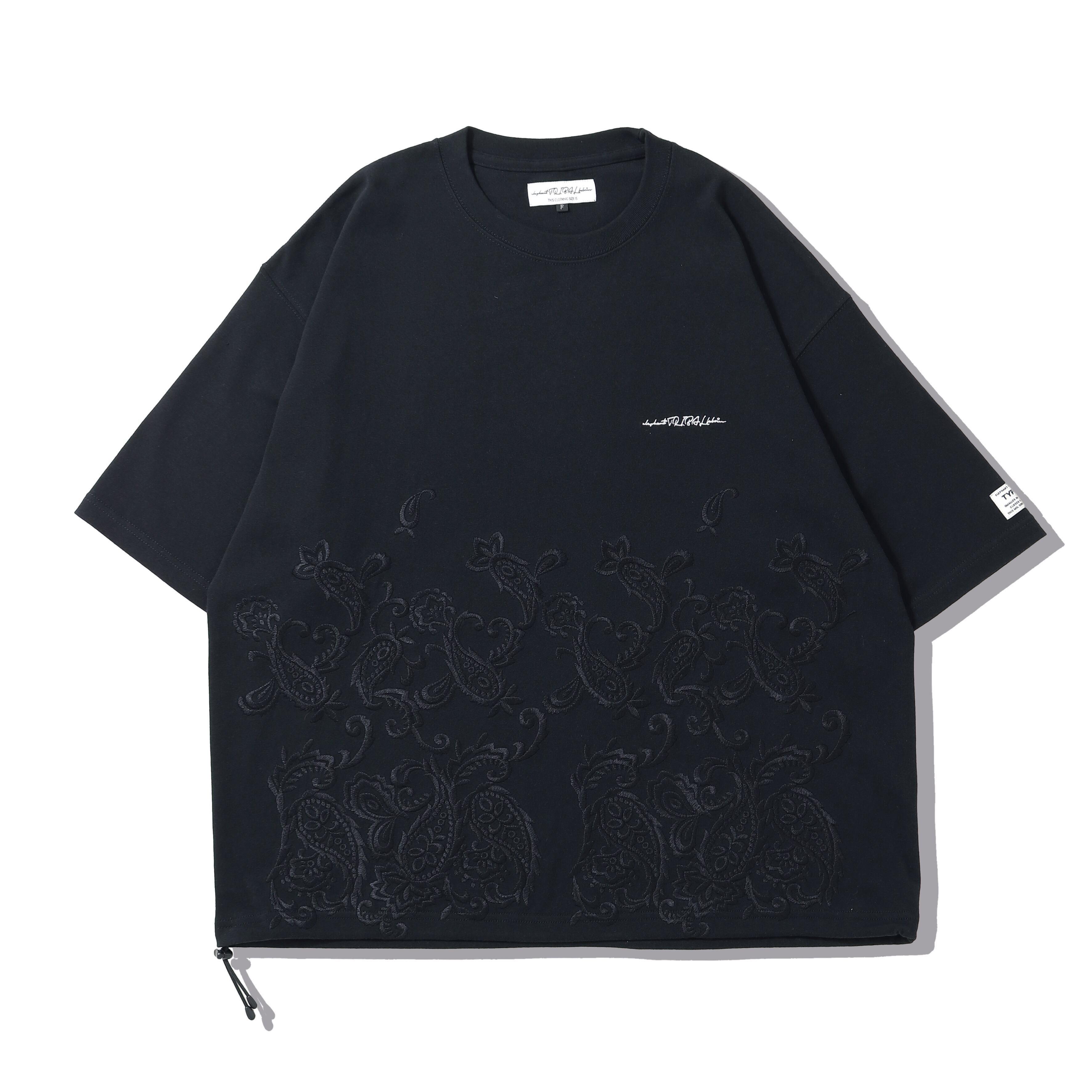 定番で展開しているFAT T-SHをベースにフロント中央から裾にかけてペイズリー刺繡を施したアイテム。