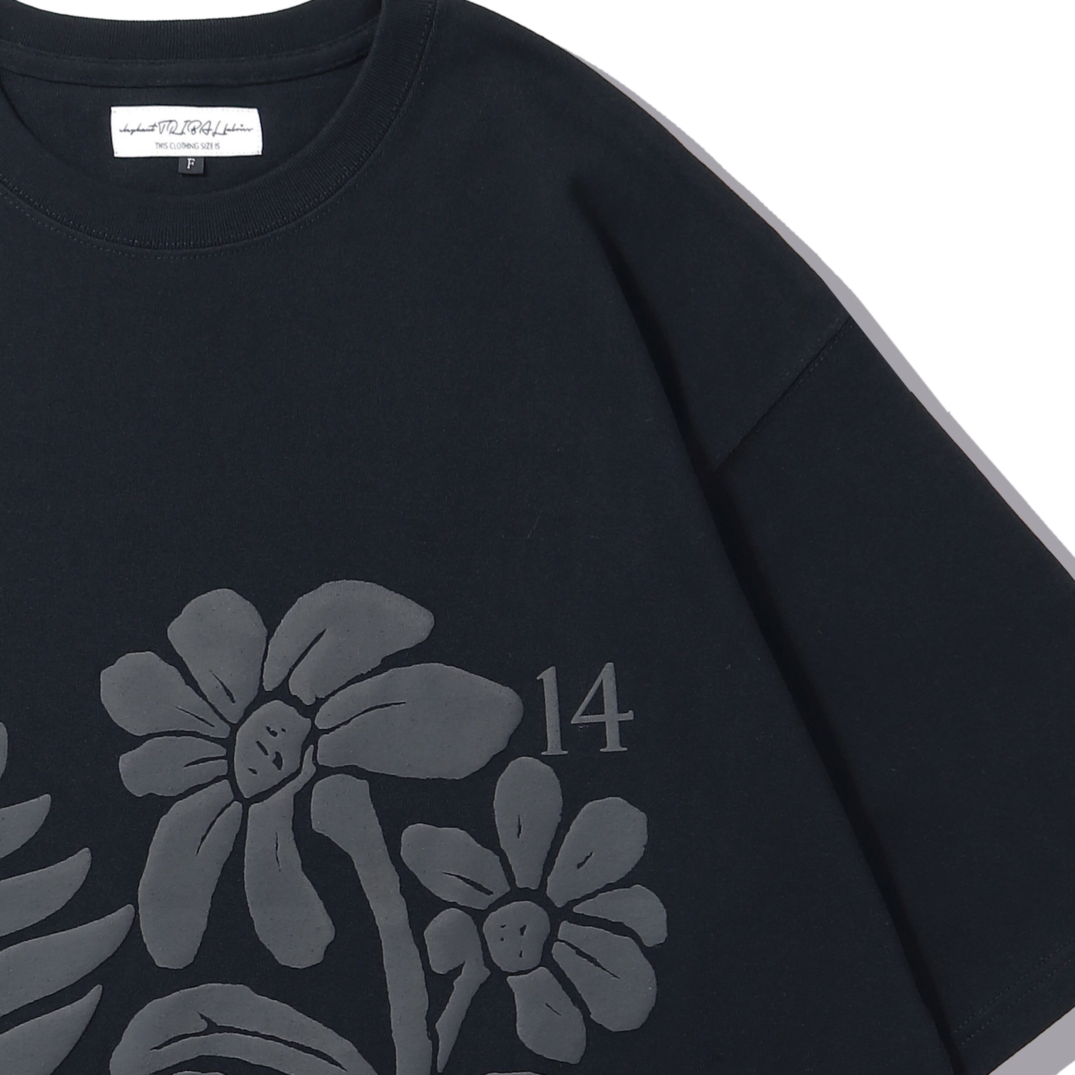 FLOWER PRINT FAT T-SH (BLACK) - フラワープリントファットティーシャツ