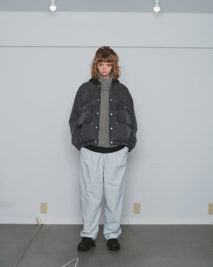 洗いこまれたデニム+クリーンなリブのコンビネーション