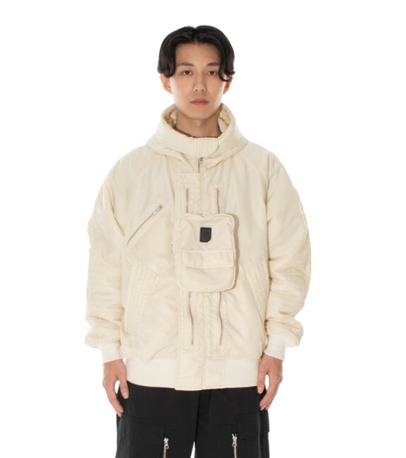 ELEVATION HOODED BOMBER JACKET (OFF WHITE) - PHINGERIN